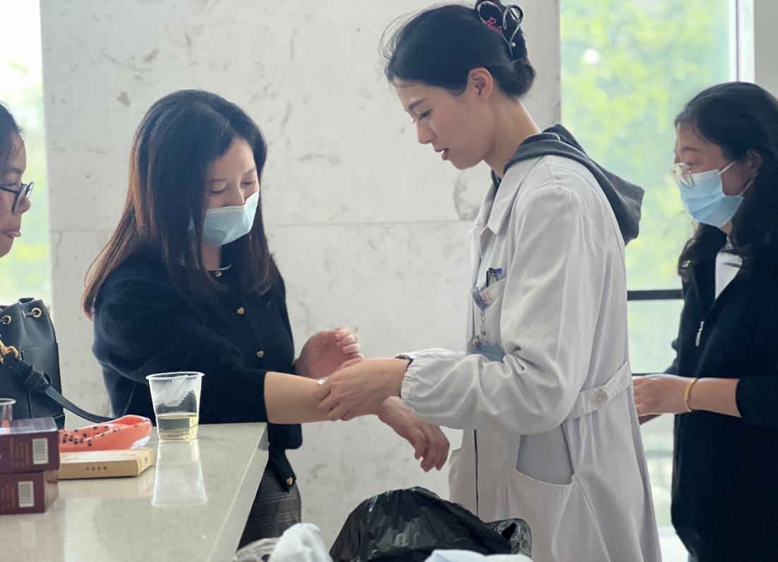 本次活动特邀南通市中医院内分泌专家李靖、呼吸科专家洪玲玲等四位主任医师为广大教职工进行问诊把脉,分别从饮食起居、运动调节、情志疗法等方面提供专业指导和建议。
